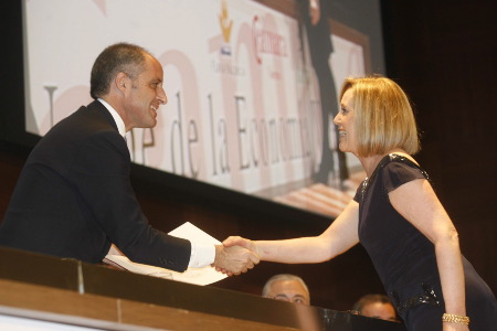 Dª. Mª Gracia Bodí, recoge el Diploma de Empresa Centenaria 2.009 concedido a Cárnicas Bodí, s.l., por la Cámara de Comercio de Valencia, de manos del President de la Genaralitat D. Francisco Camps.