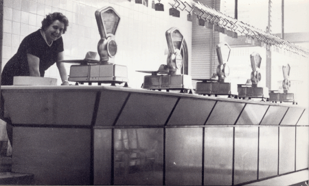 (Dª. Mª Gracia Domenech, en el mostrador de Cárnicas Bodí.)